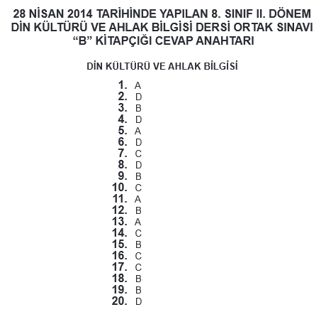 Din Kültürü Cevap Anahtarı B Kitapçığı