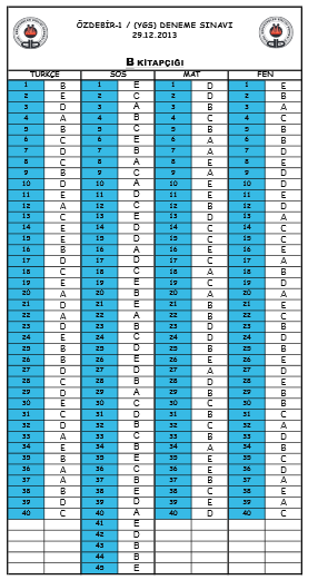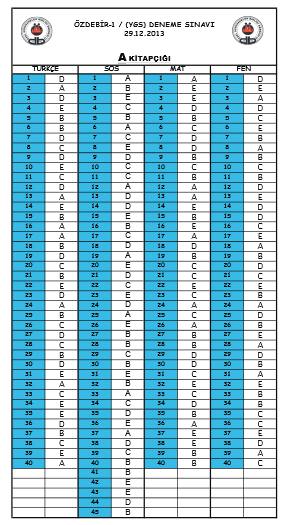 29 Aralık 2013 Özdebir YGS Genel Deneme Sınavı Cevap Anahtarı