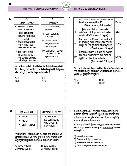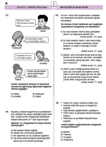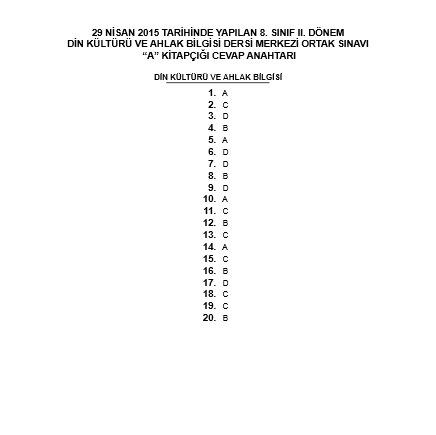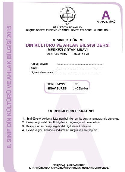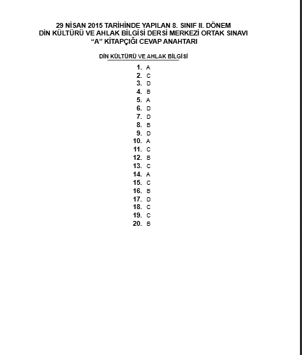 29 Nisan 2015 TEOG Din Kültürü ve Ahlâk Bilgisi Soru ve Cevapları