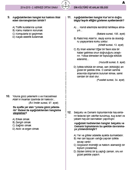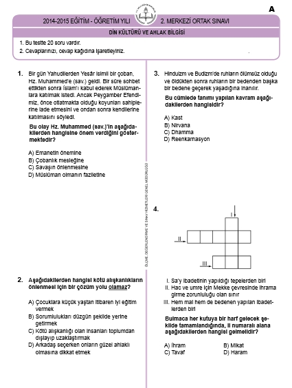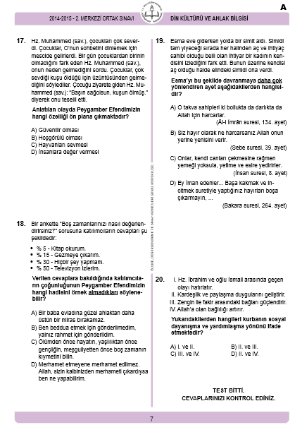 29 Nisan 2015 TEOG Din Kültürü veAhlâk Bilgisi Soru ve Cevapları