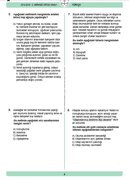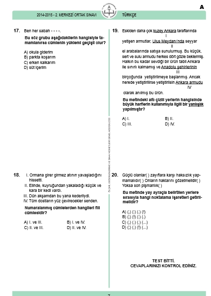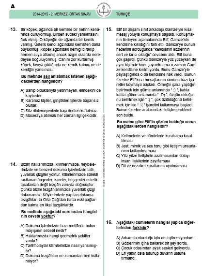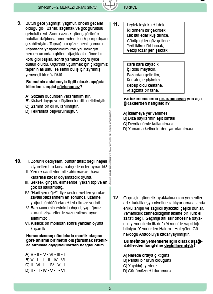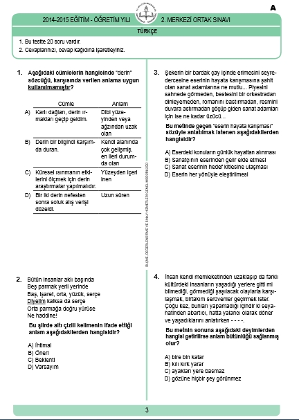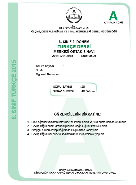 29 Nisan 2015 TEOG Türkçe Soru ve Cevapları