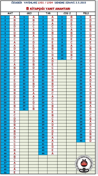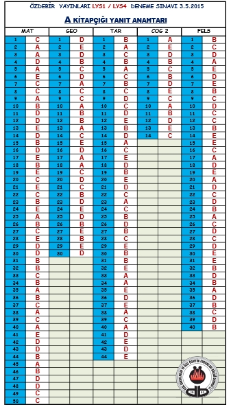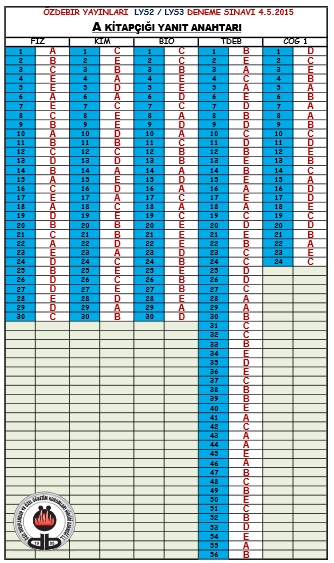 3-4 Mayıs 2015 Özdebir LYS Sınavı Cevap Anahtarı