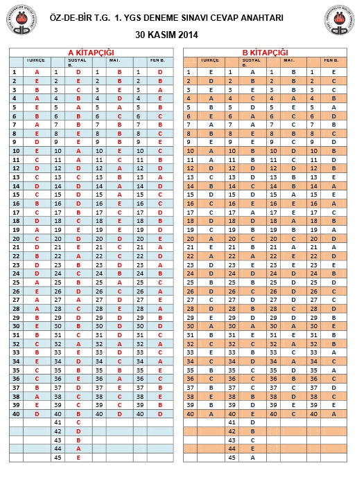 30 Kasım 2014 Özdebir YGS-1 Cevap Anahtarı