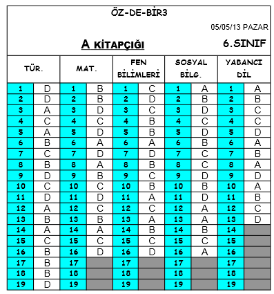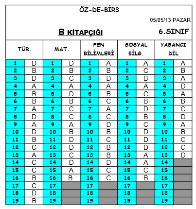 5 Mayıs 2013 Özdebir 6. Sınıf DBS-3 Cevap Anahtarı