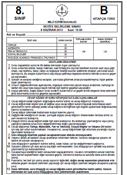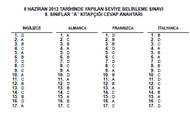 8 Haziran 2013 tarihinde uygulanan SBS Cevap Anahtarına bu galerimizden ulaşabilirsiniz.