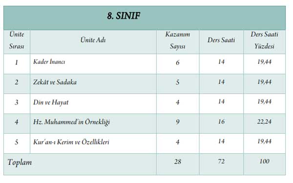 8. Sınıf Din Kültürü konuları ve müfredatı