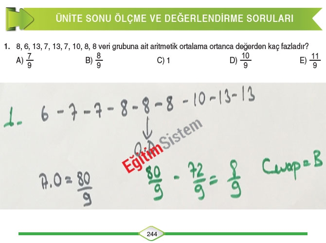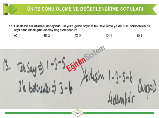 9. Sınıf Dikey Yayınları Matematik 3. Ünite Sonu Ölçme Değerlendirme 13. Soru Çözümü
