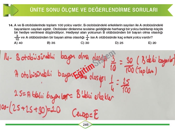 9. Sınıf Dikey Yayınları Matematik 3. Ünite Sonu Ölçme Değerlendirme 14. Soru Çözümü