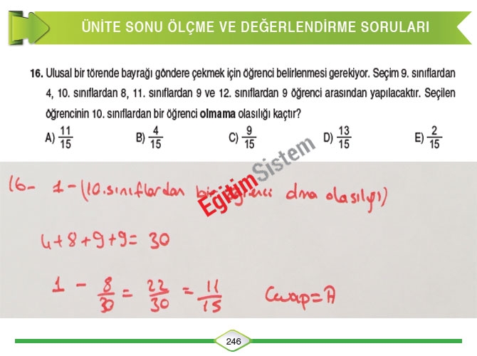 9. Sınıf Dikey Yayınları Matematik 3. Ünite Sonu Ölçme Değerlendirme 15. Soru Çözümü