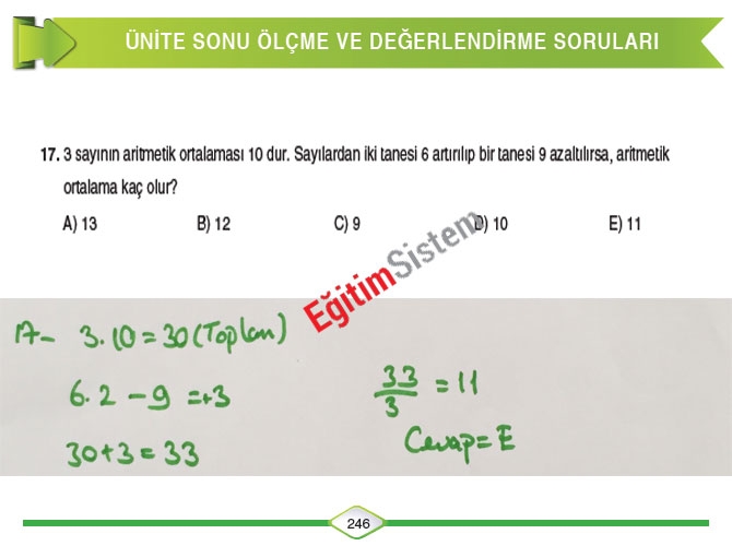 9. Sınıf Dikey Yayınları Matematik 3. Ünite Sonu Ölçme Değerlendirme 17. Soru Çözümü
