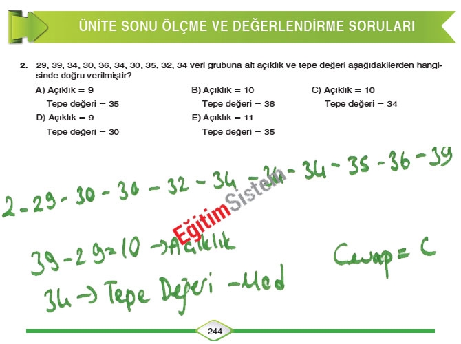 9. Sınıf Dikey Yayınları Matematik 3. Ünite Sonu Ölçme Değerlendirme 2. Soru Çözümü