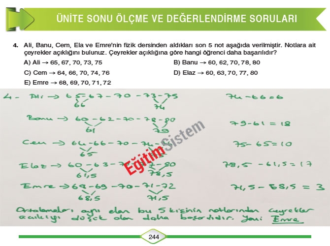 9. Sınıf Dikey Yayınları Matematik 3. Ünite Sonu Ölçme Değerlendirme 4. Soru Çözümü
