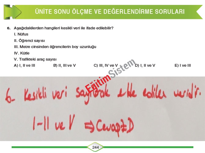 9. Sınıf Dikey Yayınları Matematik 3. Ünite Sonu Ölçme Değerlendirme 6. Soru Çözümü