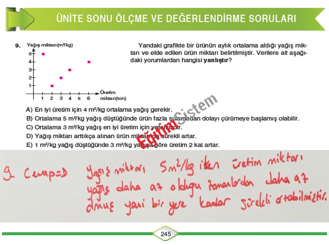 9. Sınıf Dikey Yayınları Matematik 3. Ünite Sonu Ölçme Değerlendirme 9. Soru Çözümü