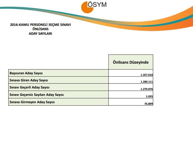 2016 KPSS Ön Lisans Sınav Sonuçlarına İlişkin Sayısal Bilgilerine bu radan ulaşabilirsiniz.