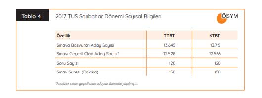 2017 TUS Sonbahar Dönemi Sayısal Bilgileri