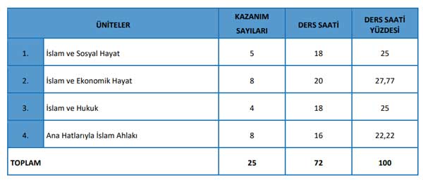 Ortaöğretim Temel Dinî Bilgiler (İslam 1) Dersi Öğretim Programı Ünite ve Konuları
